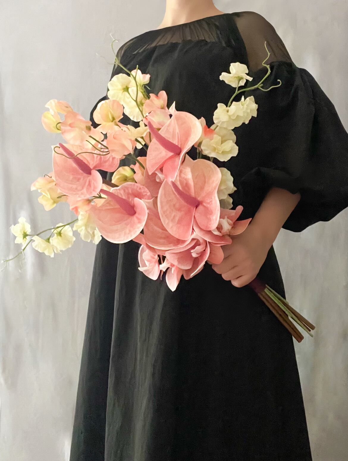花と葉の種類:アンスリウム、胡蝶蘭、スイートピー